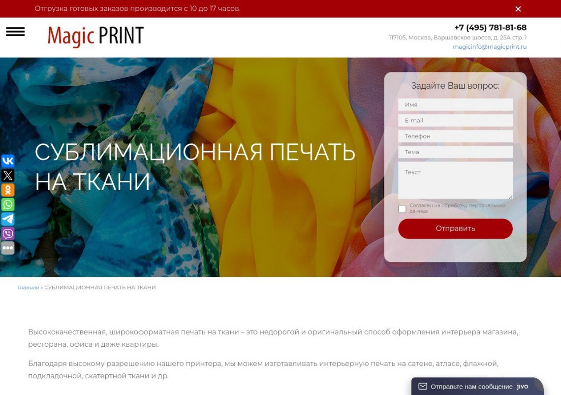 Широкоформатная печать на ткани — это современная технология, позволяющая наносить полноцветные изображения большой площади на различные текстильные материалы. Метод открывает широкие возможности для рекламы, декора и создания уникальных изделий. Главное достоинство такого способа — возможность получить цельное изображение без швов, даже на крупногабаритных изделиях. Современные чернила обеспечивают яркие, насыщенные и устойчивые к выцветанию цвета. Полотна, отпечатанные методом широкоформатной печати на ткани https://www.magicprint.ru/service/sublimaczionnaya-pechat-na-tkani, часто обладают хорошей воздухопроницаемостью, их можно стирать и подвергать другим видам щадящей обработки. Это делает продукцию практичной и долговечной.